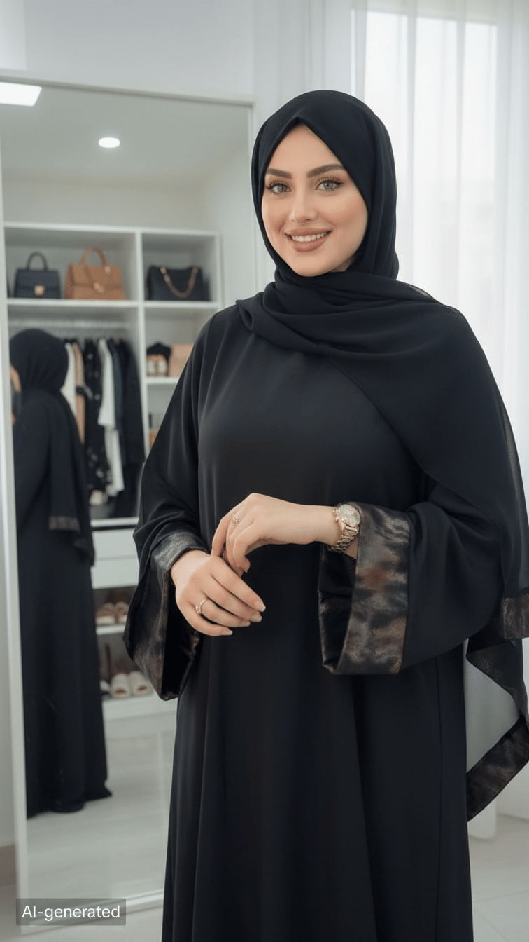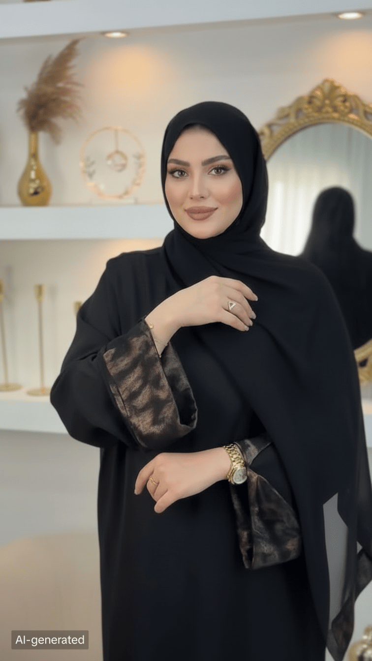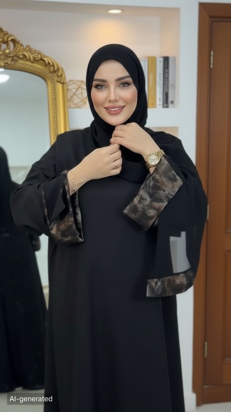 سهولة التنسيق: الطقم يأتي كاملاً (عباية + خمار)، مما يجعله الحل الأسرع والأكثر أناقة لمناسباتكِ.